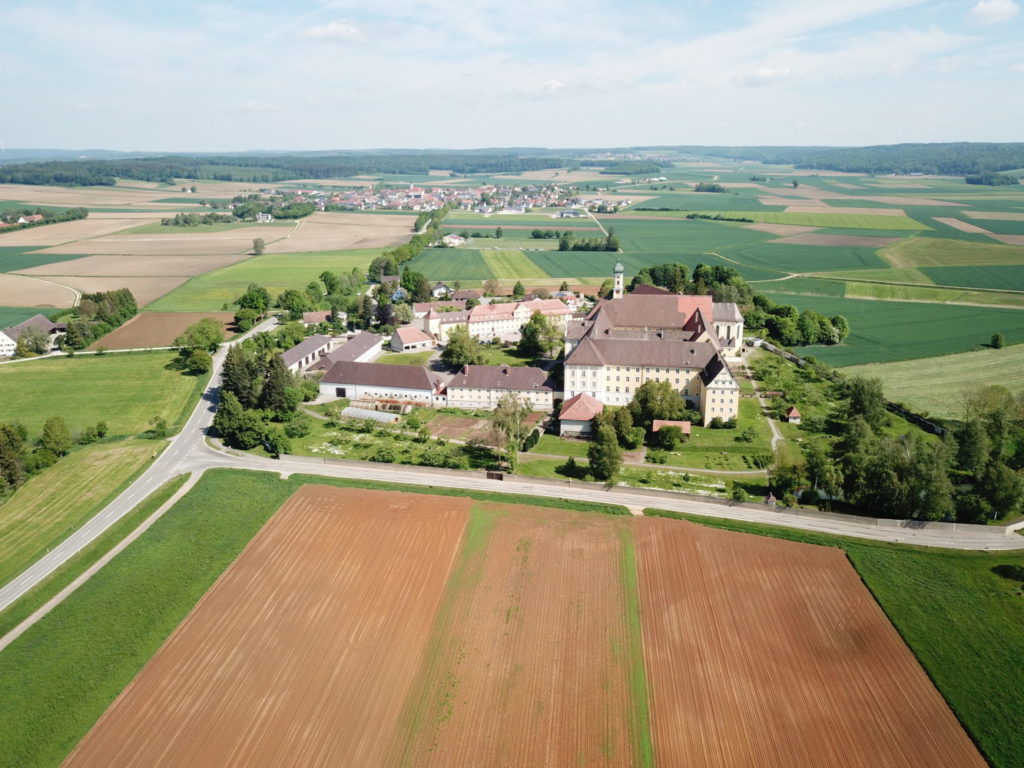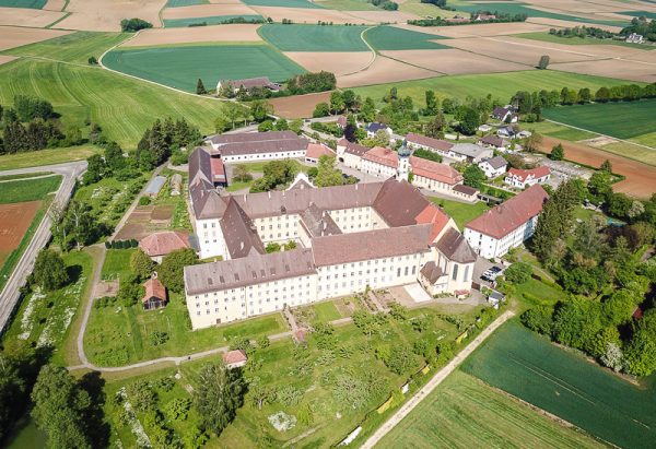 Hier sehen Sie unsere Luftaufnahme vom Kloster Maria Medingen.