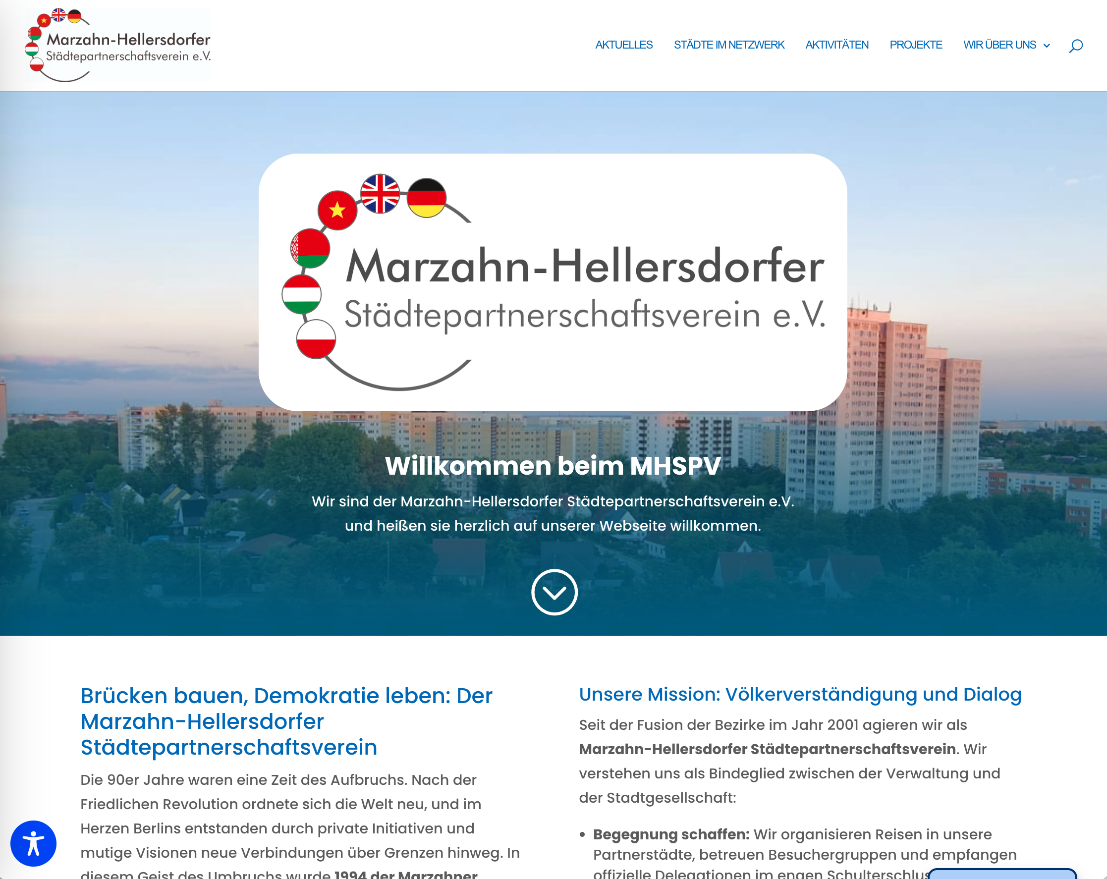 Für den Marzahn-Hellersdorfer Städtepartnerschaftsverein e.V. wurde eine neue Webseite auf WordPress-Basis erstellt.
